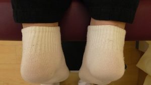 左右脚の長さを比較しながら矯正